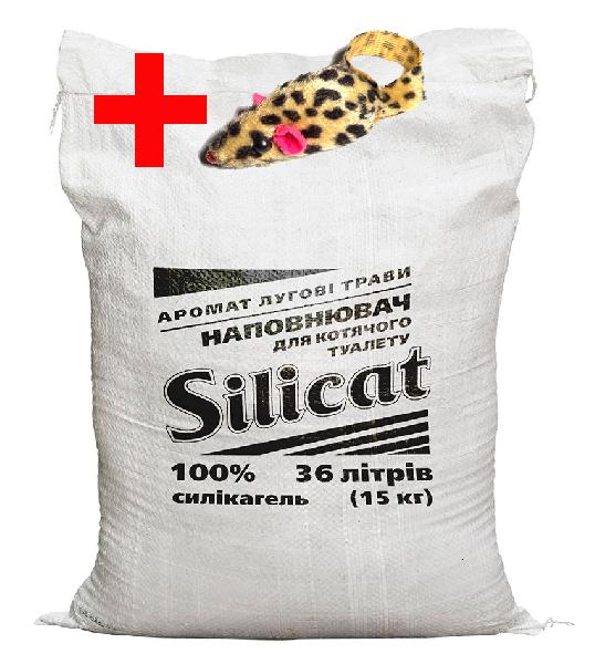 Наповнювач для котячого туалету силікагелевий 15 кг із запахом лугових трав + подарунок іграшка миша